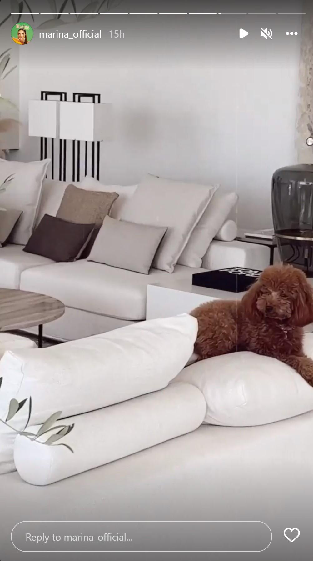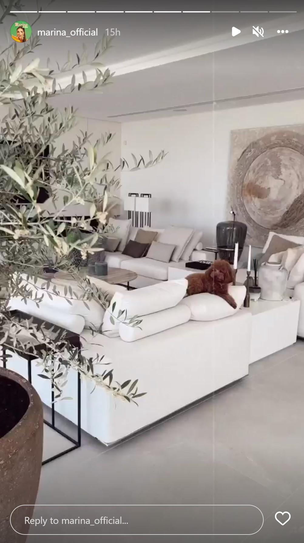 Zamiast tego na Instagramie Mariny pojawiło się pierwsze ujęcie pokazujące ich nowy, zachwycający salon! W środku przeważają jasne kolore i beże, znalazło się miejsce na dwie duże kanapy i stolik kawowy. Całość jest urządzona ze smakiem, dominują tam nowoczesne meble, lampy, a na jednej ze ścian wisi sporych rozmiarów obraz. Na stoliku koło kanapy “przypadkowo” znalazł się również album Toma Forda wart ponad 500 złotych. Uwagę przykuwa również ogromne drzewko oliwne w gigantycznej donicy. Na zewnątrz dla spragnionych ochłody i relaksu czeka duży basen z przeszkloną balustradą.