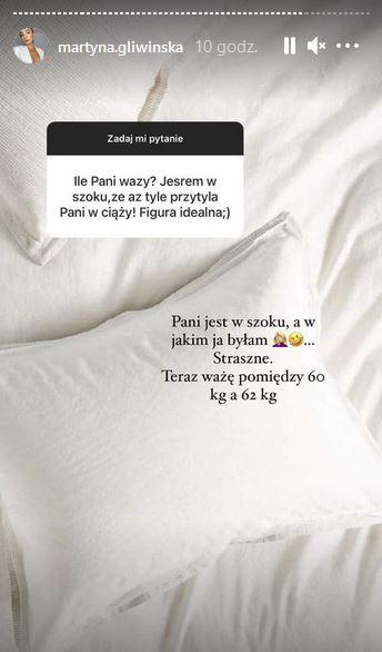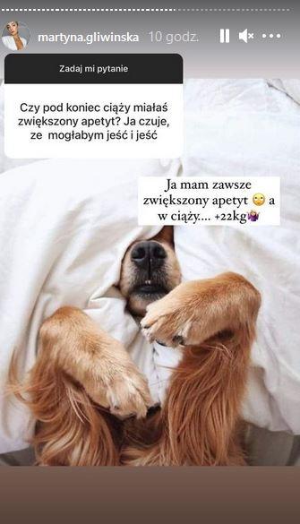 Martyna Gliwińska została zapytana przez fankę o to, czy przy końcówce ciąży miała wzmożony apetyt. Szczerze odpowiedziała i przy okazji zdradziła, że przytyła 22 kg.