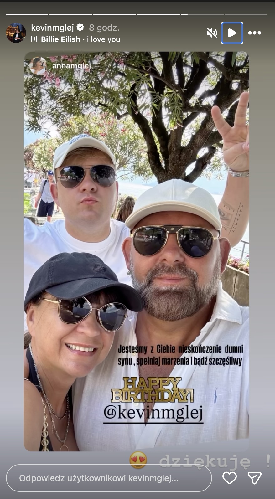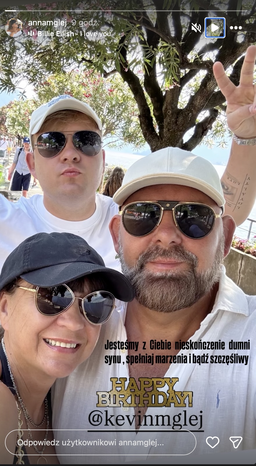 Na udostępnionej przez Kevina relacji pojawiło się zdjęcie z mamą i tatą, a obok niego krótki, lecz niezwykle poruszający podpis od rodziców, niosący ogromny ładunek emocjonalny: