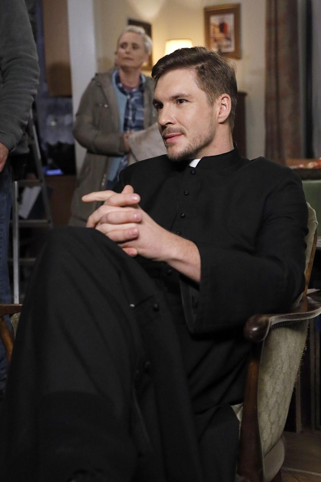 Mikołaj Roznerski jako ksiądz wikariusz w serialu Ojciec Mateusz – zdjęcia