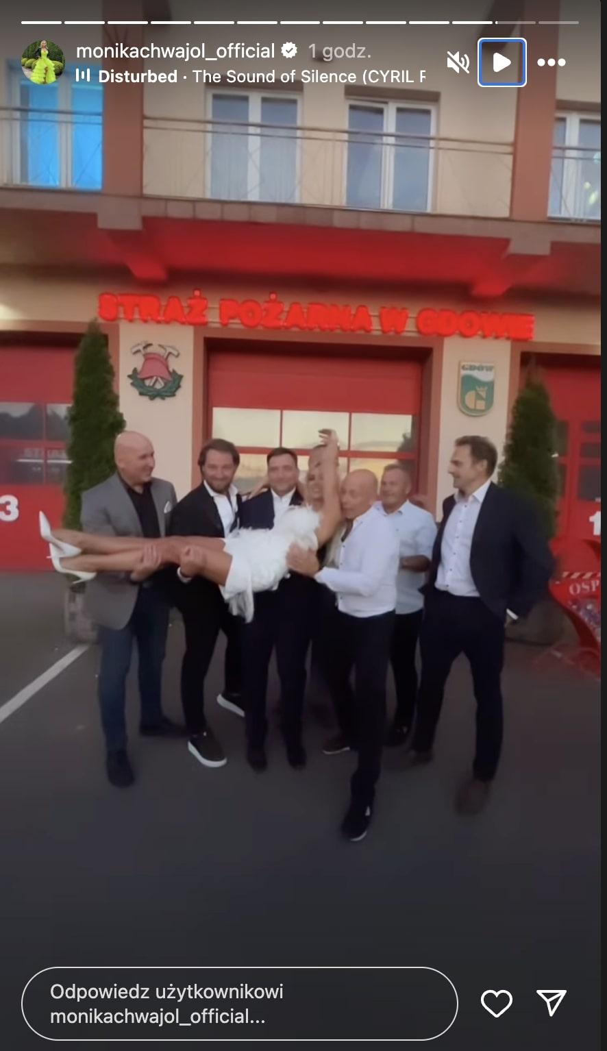 Monika Chwajoł zaskoczyła męża imprezą niespodzianką, którą zorganizowała w pełni samodzielnie. Na InstaStories wyznała, że chciała, by impreza odbyła się wśród “kucharek, kelnerek, ze swojskim jedzeniem”. Dodała także, że drugi ślub odbył się w tym samym miejscu co pierwszy, czyli w remizie w Gdowie. Celebrytka w tym dniu wybrała bardzo krótką sukienkę w białym kolorze. Zaszalała ze strojem?