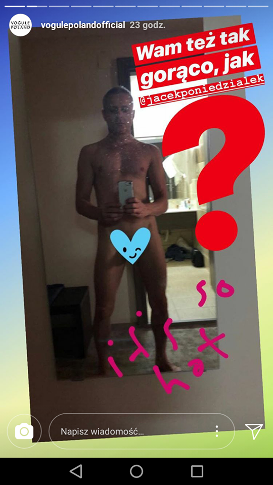 Zdjęcie opublikował profil na instagramie o nazwie vogulepolandofficial, który zamieścił nagą fotkę Jacka Poniedziałka na swoim InstaStory.
