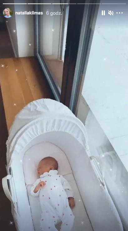Natalia Klimas pokazała też piękne wnętrza w swoim mazurskim domu. Widzimy, że maleńka Hania śpi w koszu Mojżesza, a za oknem leży śnieg, co daje cudowny świąteczny klimat.