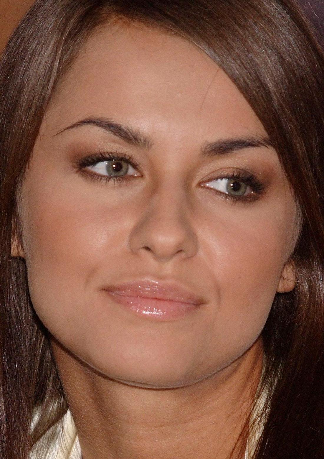 Moim zdaniem wyglądała bardzo ładnie, poza tym kiedyś była taka moda i dziewczyny malowały się w ten sposob – dużo błyszczyka, cienkie brwi, dlatego wyglądała jak “Jolka” jak ktoś niżej napisał. Ale rysy twarzy bardzo ładne, jedyny mankament to nos.