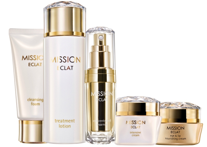 Linia MISSION ECLAT jest przeznaczona dla kobiet dojrzałych, po 45. roku życia. Zawiera najcenniejsze japońskie składniki: ekstrakt z brązowych alg i ekstrakt Chinipi. Wyróżnia ją zaawansowana technologia zainspirowana nagrodzonymi nagrodą Nobla badaniami nad molekułą RNA. W świetle tych badań naukowcy odkryli, że można redukować proteiny odpowiedzialne za rozpad włókien kolagenowych oraz stymulować te, które odpowiadają za ich wzrost. Ekskluzywne, odżywcze formuły kosmetyków z linii MISSION ECLAT rozpieszczają zmysły eleganckim zapachem róży i subtelnego piżma. W jej skład wchodzą: