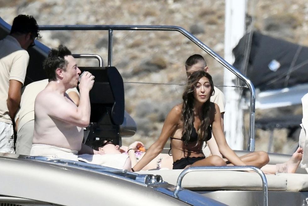 Blady jak ściana Elon Musk popija drinki z opaloną brunetką na Mykonos (ZDJĘCIA)