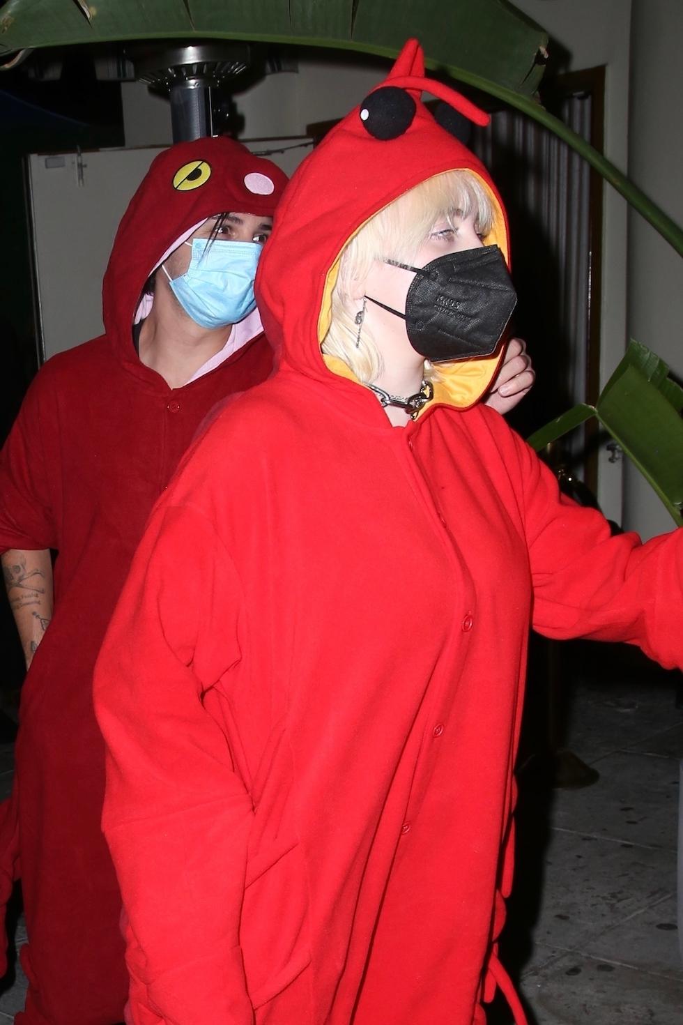 Billie postawiła na niecodzienny kostium. Czerwona peleryna, niebotycznie długie czerwone paznokcie – Eilish przebrała się za homara. Jej chłopak także przebrał się za czerwonego potworka – razem przypominając czerwone kapturki.