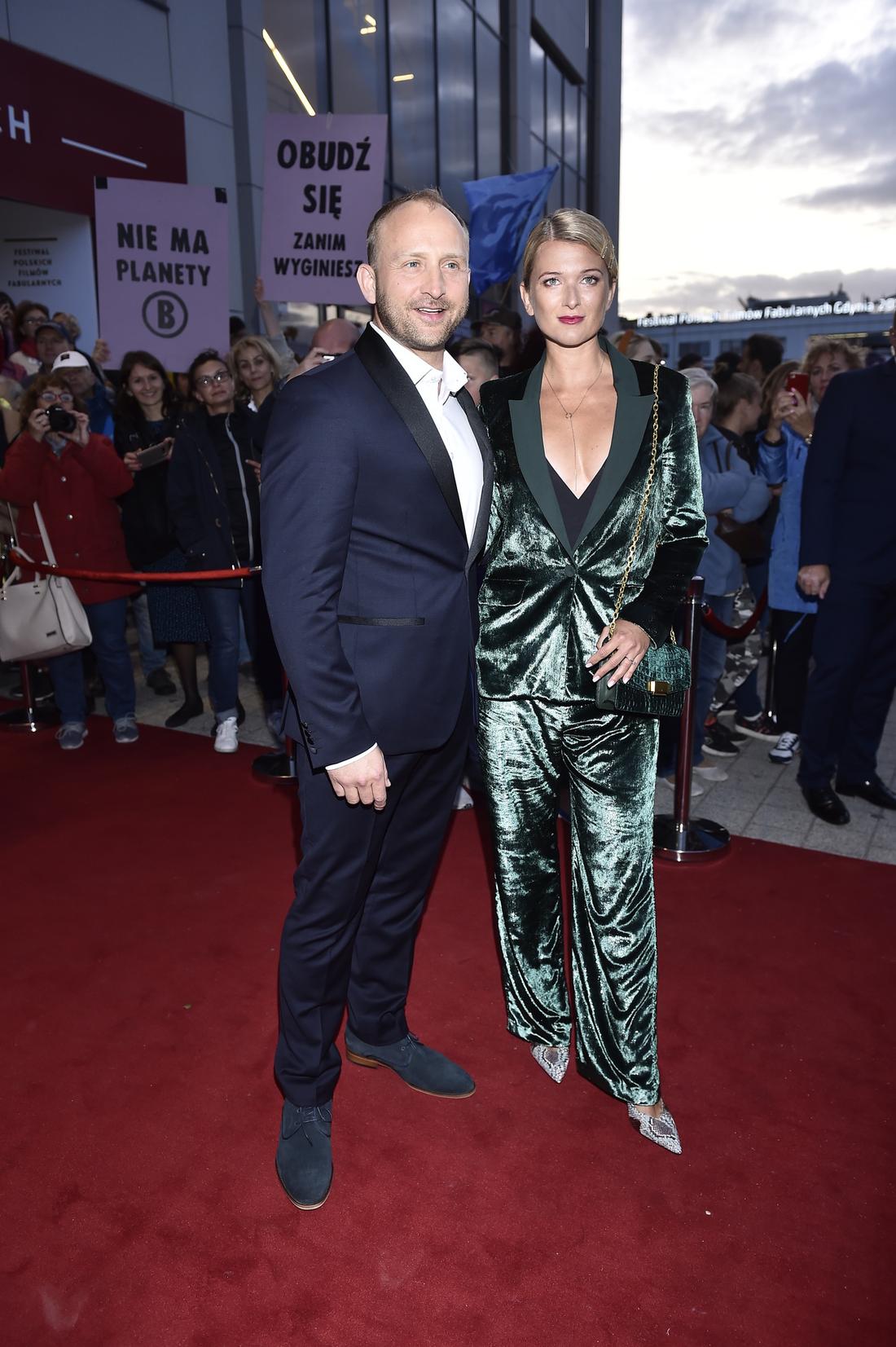 Duże zainteresowanie wzbudzał Borys Szyc, który pokazał się z partnerką – Justyną Nagłowską. Kobieta na razie najbardziej błyszczała na czerwonym dywanie, jeśli chodzi o kreację. Miała na sobie świecący garnitur w kolorze butelkowej zielni i w tym samym odcieniu torebkę.