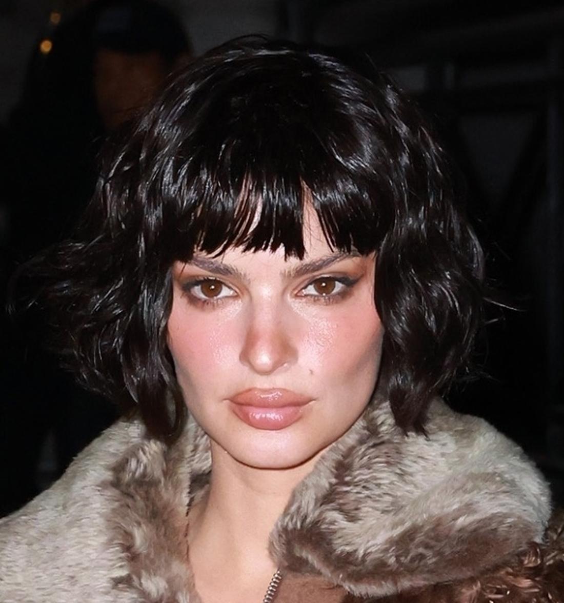 Ratajkowski ścięła też włosy na krótkiego boba z grzywką i lekko je podkręciła tworząc fale.