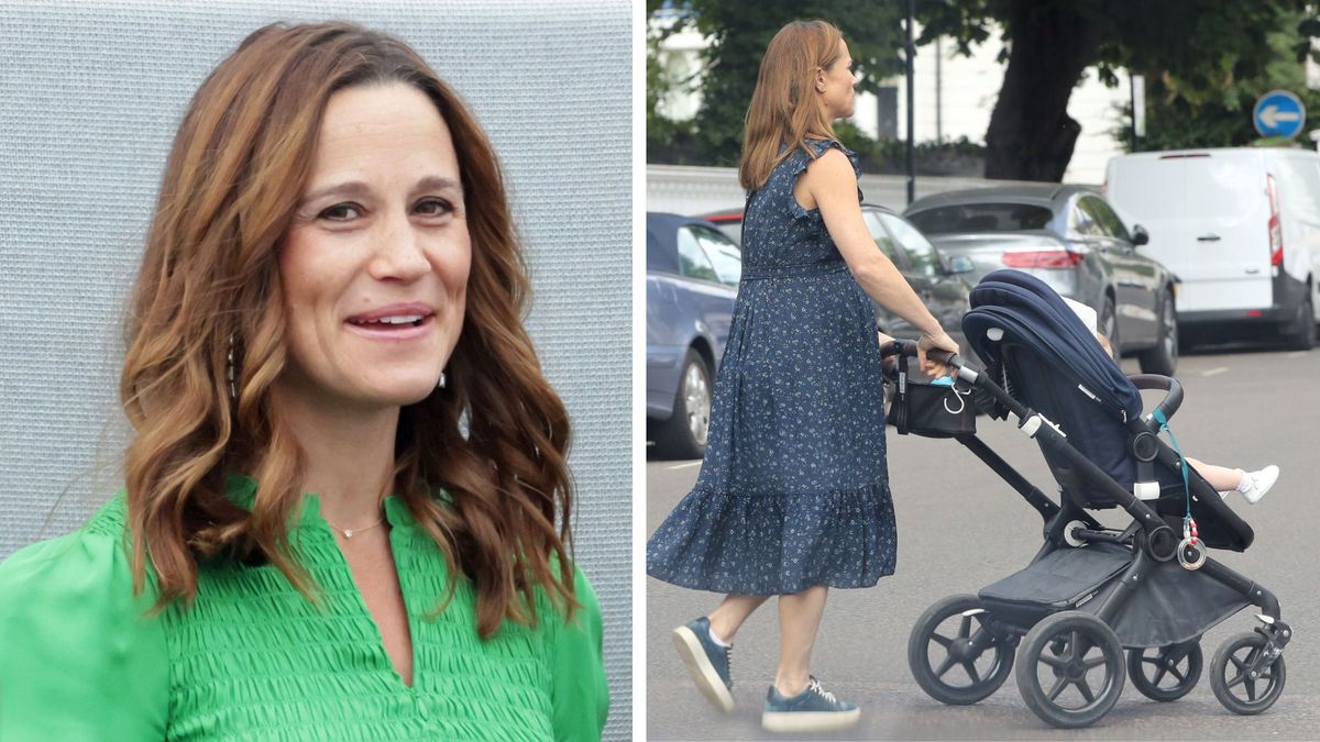 Pippa Middleton z grymasem na twarzy spaceruje z synem (FOTO)