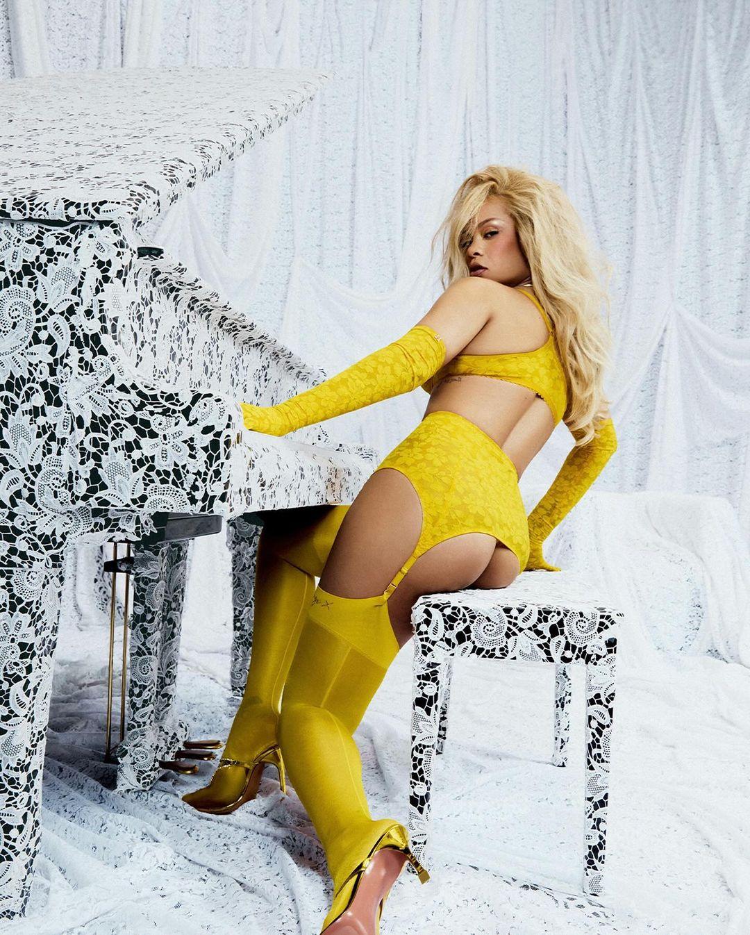 Rihanna zrzuca ciuszki i prezentuje ciało po 2 ciążach w seksownej ŻÓŁTEJ bieliźnie! Fani: “BOGINI” (FOTO)