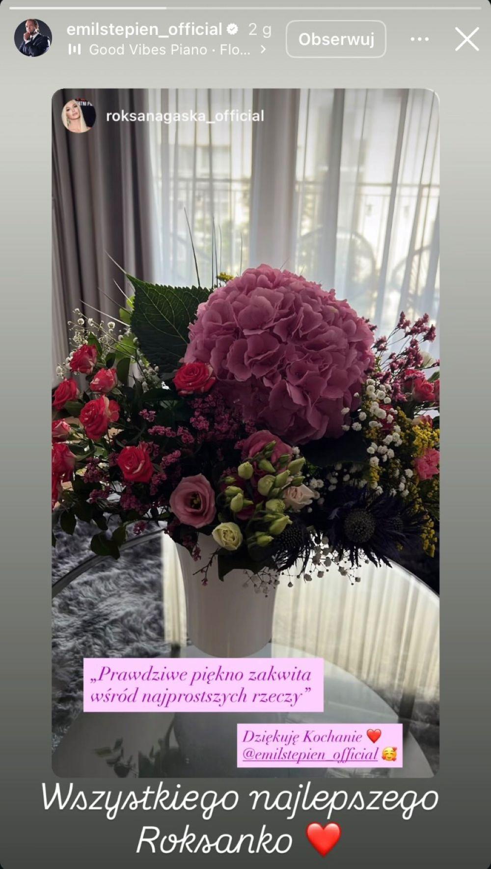Dziś Roksana świętuje swoje 32. urodziny. Celebrytka już z rana pochwaliła się niespodzianką urodzinową od swojego ukochanego w postaci potężnego bukietu kwiatów. Gąska podziękowała i zamieściła obok tajemniczy wpis: