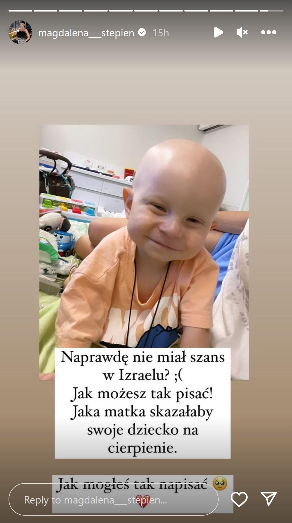 Naprawdę nie miał szans w Izraelu? ;( Jak możesz tak napisać! Jaka matka skazałaby swoje dziecko na cierpienie. Jak mogłeś tak napisać – skwitowała.