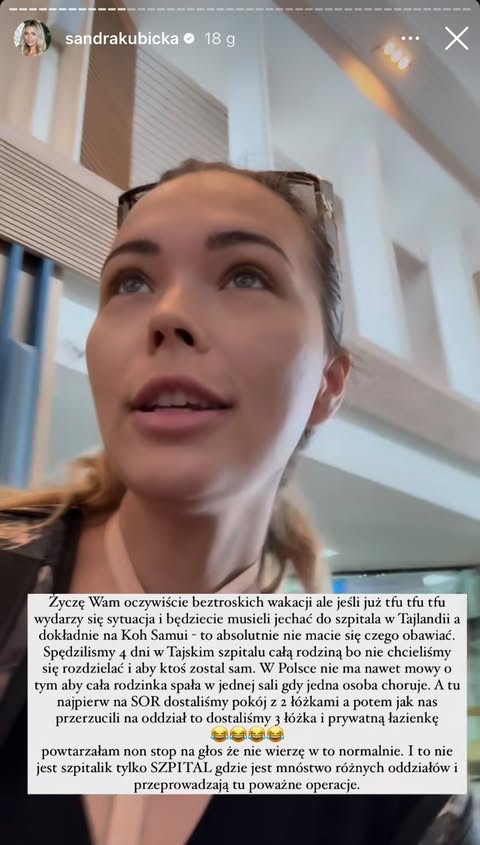 Celebrytka zwróciła się także do internautów i powiedziała, że gdyby ktoś musiał jechać do szpitala w Tajlandii, a dokładnie na Koh Samui, to absolutnie nie ma się czego obawiać. Dodatkowo opowiedziała o tym jak jej cała rodzina została tam przyjęta.