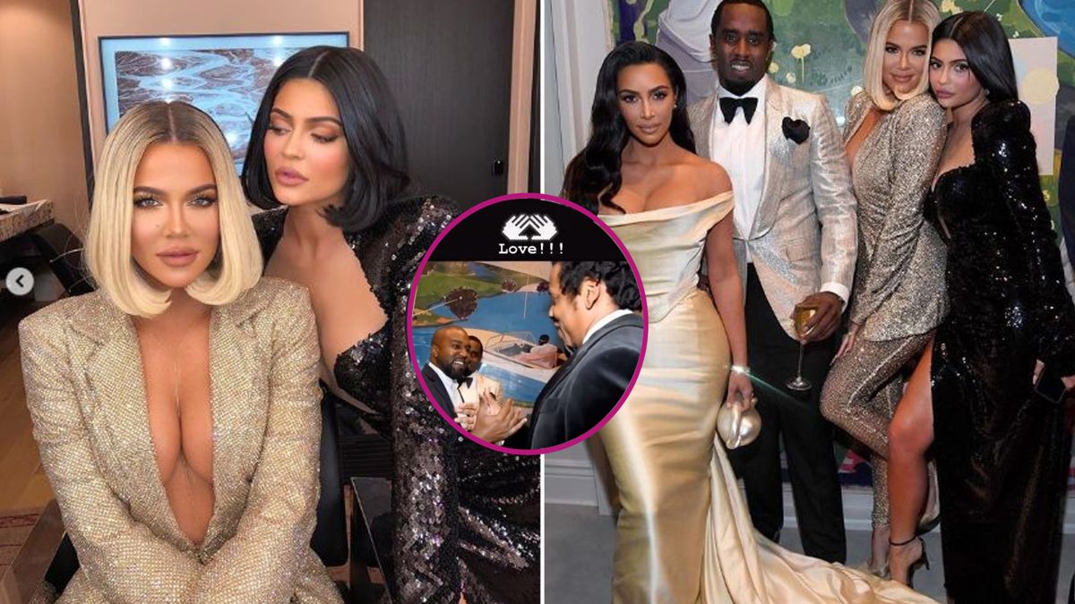 Seksowne Kim, Kylie i Khloe na urodzinach P. Diddy’ego i TEN UŚCISK między Kanye i Jayem Z