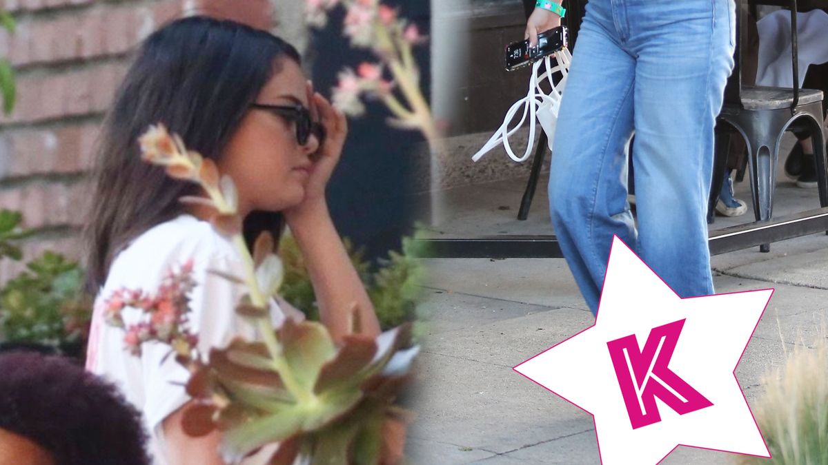 Selena miała na sobie obcisłe jeansy, biały T-shirt i różowe, klapki. Takie buty są popularne wśród gwiazd – niedawno pojawiła się w podobnych Kim Kardashian, więcej tutaj: Po wyjściu z Białego Domu Kim Kardashian wskoczyła w luźne ciuszki. Tylko te BUTY (ZDJĘCIA). Selena podpięła włosy różową spinką.