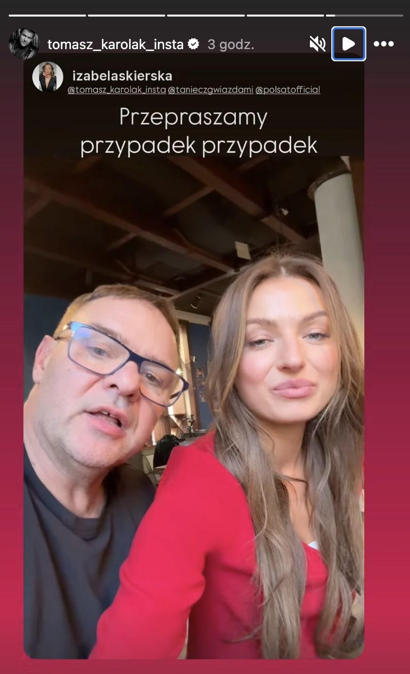 Podczas niedzielnego odcinka, w którym uczestnicy odtwarzali słynne choreografie z poprzednich edycji, Tomasz Karolak i jego taneczna partnerka Izabela Skierska wcielili się w duet Anny Głogowskiej i Piotra Gąsowskiego. Gdy Krzysztof Ibisz zapowiadał ich wejście na parkiet po przerwie reklamowej, kamery uchwyciły moment, w którym aktor pokazał w stronę obiektywu… środkowy palec. Sytuacja trwała zaledwie chwilę, ale nie umknęła czujnym widzom.