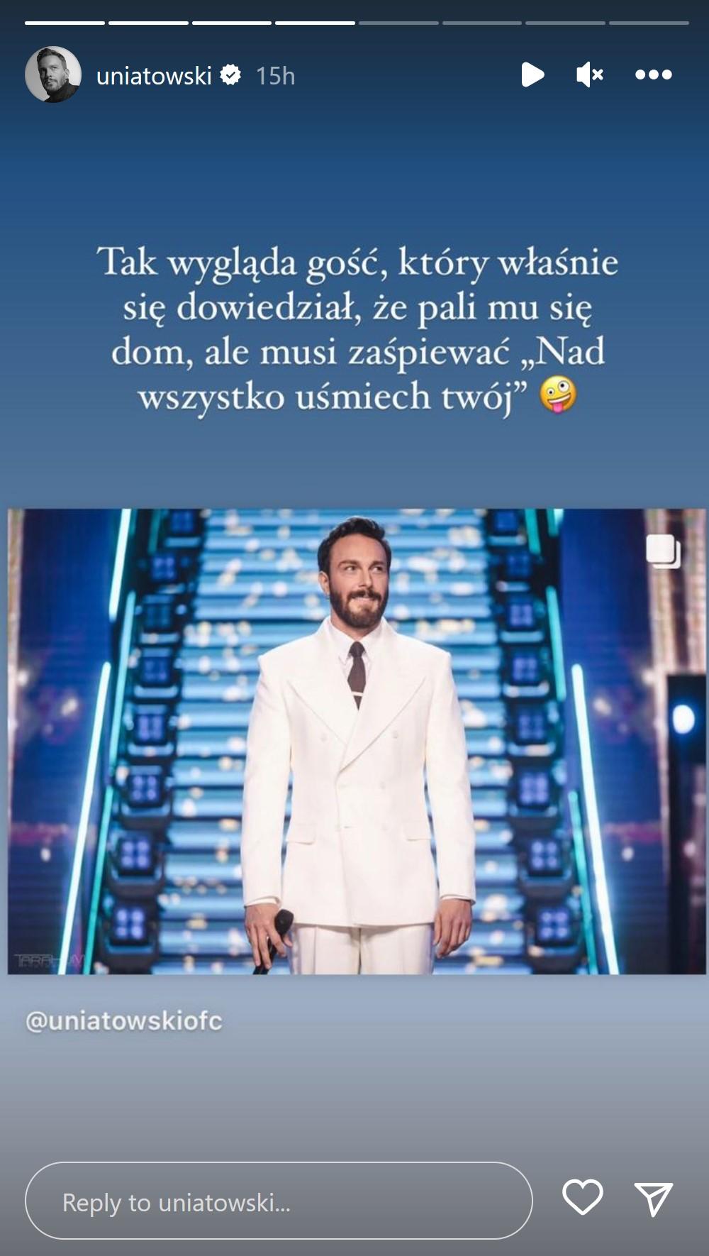 Teraz wokalista wziął udział w Top of the Top Sopot Festival 2023, gdzie zachwycił widownię swoim wykonaniem piosenki Zbigniewa Wodeckiego. Okazuje się jednak, że jego występ był podszyty ogromnym niepokojem i dziejącą się w tle tragedią – tuż przed wejściem na scenę Uniatowski dowiedział się, że płonie mu dom!