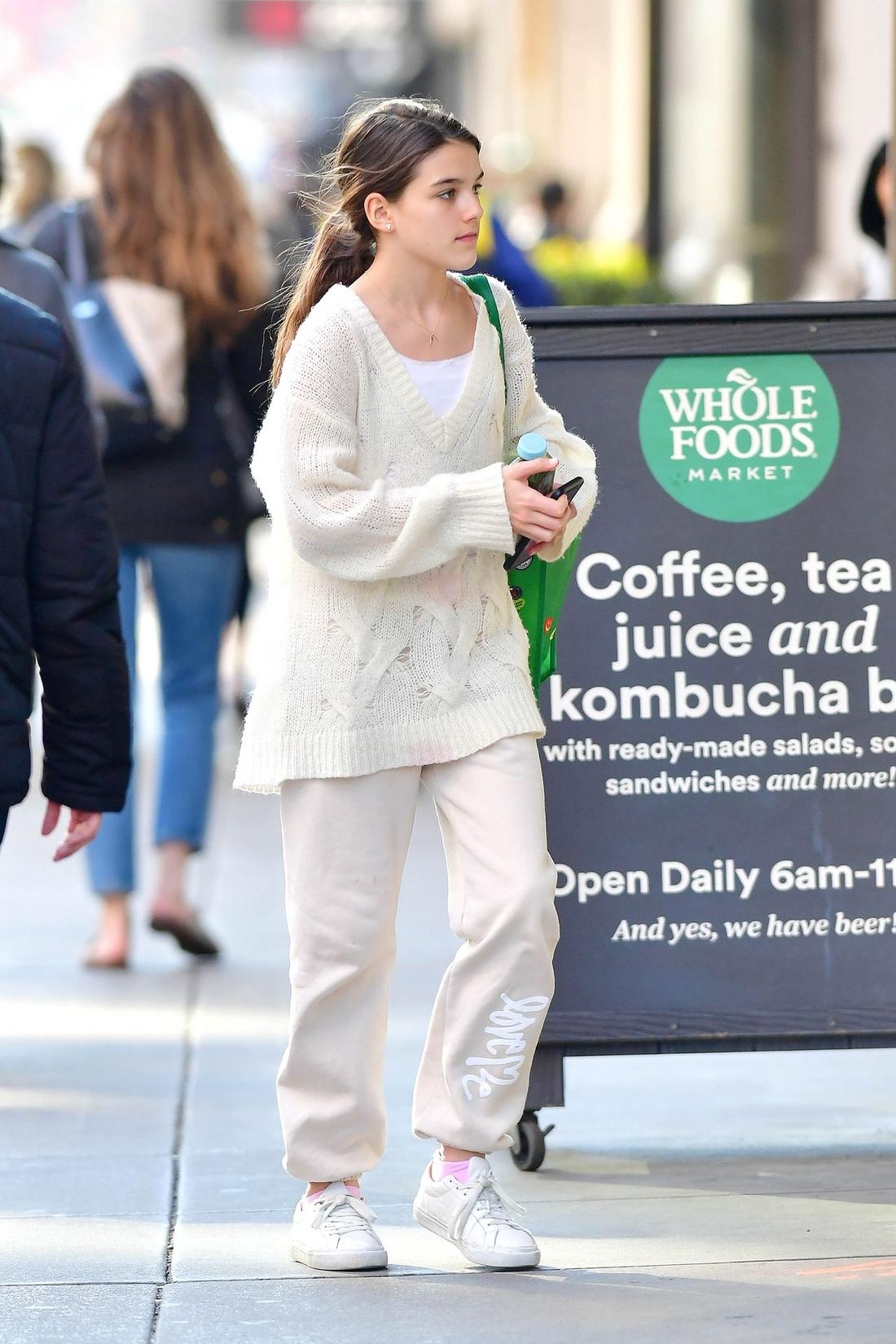 Zdaje się, że Suri polubiła się z dresami, bo dość często jest w nich widywana. Do tego dobrała biały sweter i białe buty. W tym wygodnym stroju udała się na zakupy spożywcze. Też macie wrażenie, że im starsza jest Suri, tym bardziej jest podobna do swojego ojca, Toma?