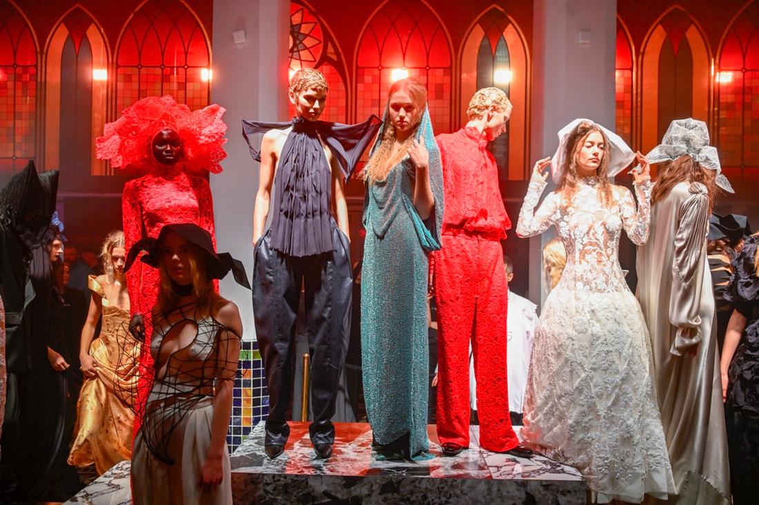Na wybiegu pojawiły się wyraziste formy, koronki oraz elementy inspirowane ikonografią Bożego Narodzenia. Uwagę zwracały także efektowne nakrycia głowy, które nadawały stylizacjom teatralnego, ale nieprzesadzonego charakteru. Pokaz nie dominował wieczoru, lecz stanowił jego naturalny punkt odniesienia, wokół którego budowała się dalsza część spotkania.