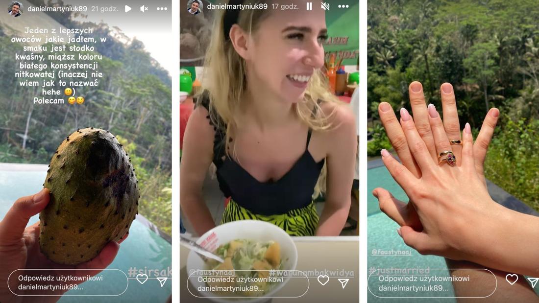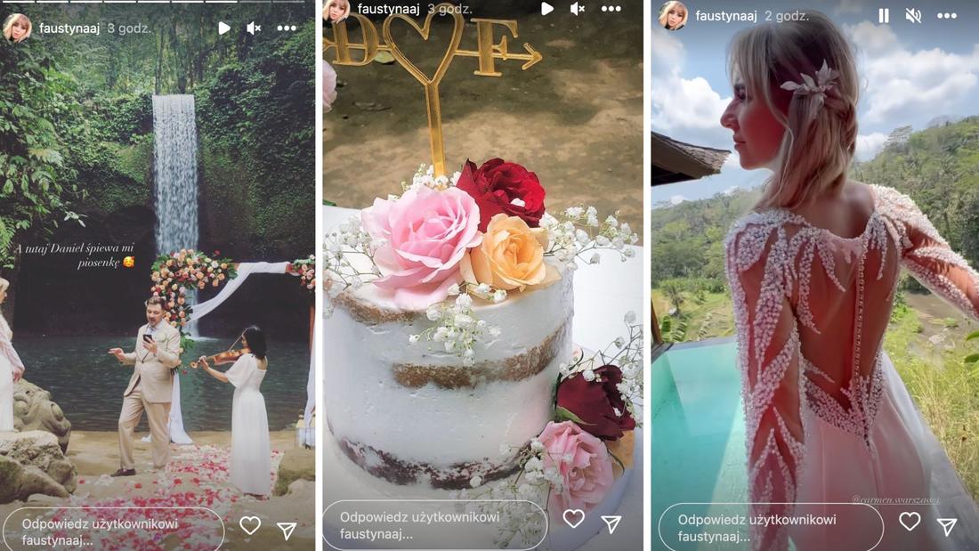 Ukochana Daniela pochwaliła się pierwszymi zdjęciami z ceremonii, na których para młoda pozuje m.in. przy tabliczce z napisem: “Witamy na ślubie Daniela i Faustyny. Bali, 23 października 2023”.