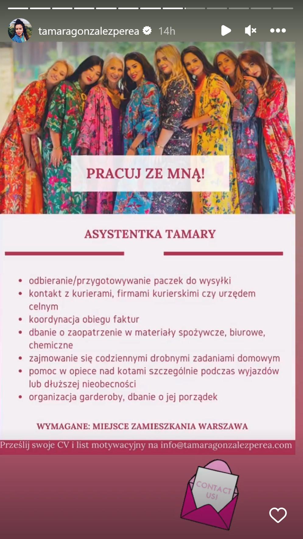 Choć po aferze ze “Sprawą dla reportera” szum wokół Tamary ostatecznie ucichł, teraz znów zdobyła zainteresowanie i uwagę mediów. Wszystko przez nową relację na Instagramie, na której zareklamowała, że… szuka asystentki!