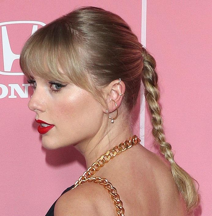Artystka zaskoczyła nie tylko wygraną i przemówieniem, ale też wyglądem. Taylor na różowym dywanie zaprezentowała się w granatowym kombinezonie ze złotymi łańcuszkami Oscara de la Renty. Postawiła na niezwykle łatwą fryzurę do wykonania – wysoki warkocz. Wystarczy zrobić wysoki kucyk i spleść włosy.