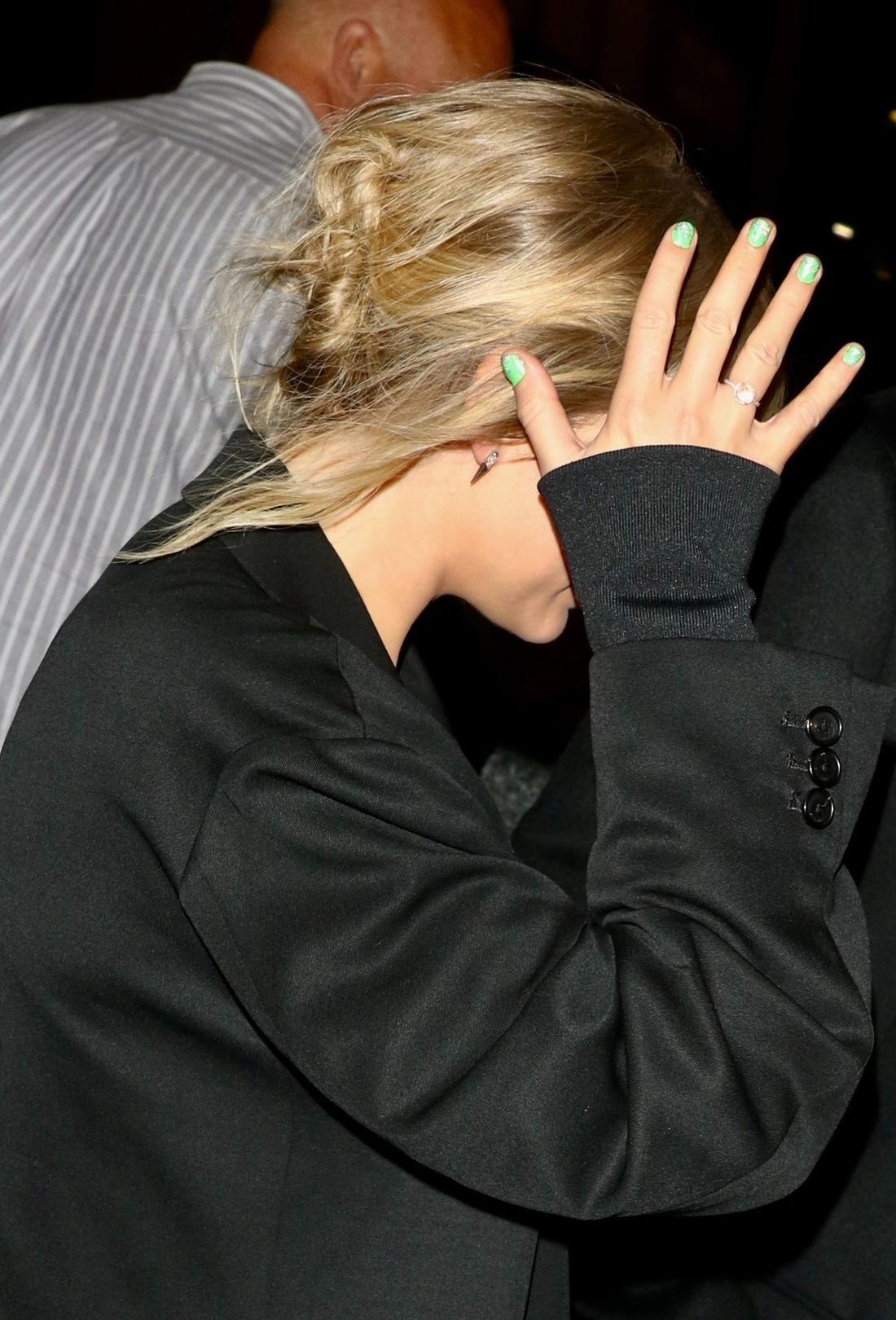 Paparazzi podpatrywali parę, gdy wychodziła z after party po Saturday Night Live. Zakochani trzymali się za ręce, Tay zasłaniała twarz przed blaskiem fleszy, a przy okazji pokazywała śliczny pierścionek.