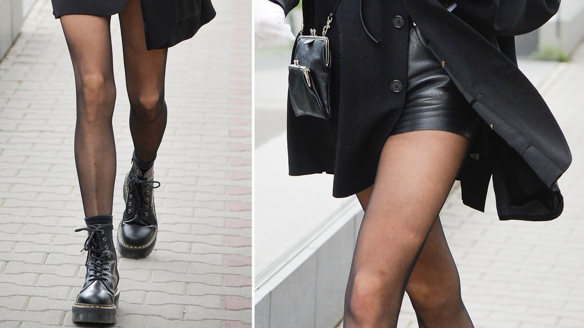 Najnowsza stylizacja Sablewskiej to prawdziwy ogień. Gwiazda założyła króciutkie szorty, czarne, sexy rajstopy i dobrała do nich wielką marynarkę i martensy.