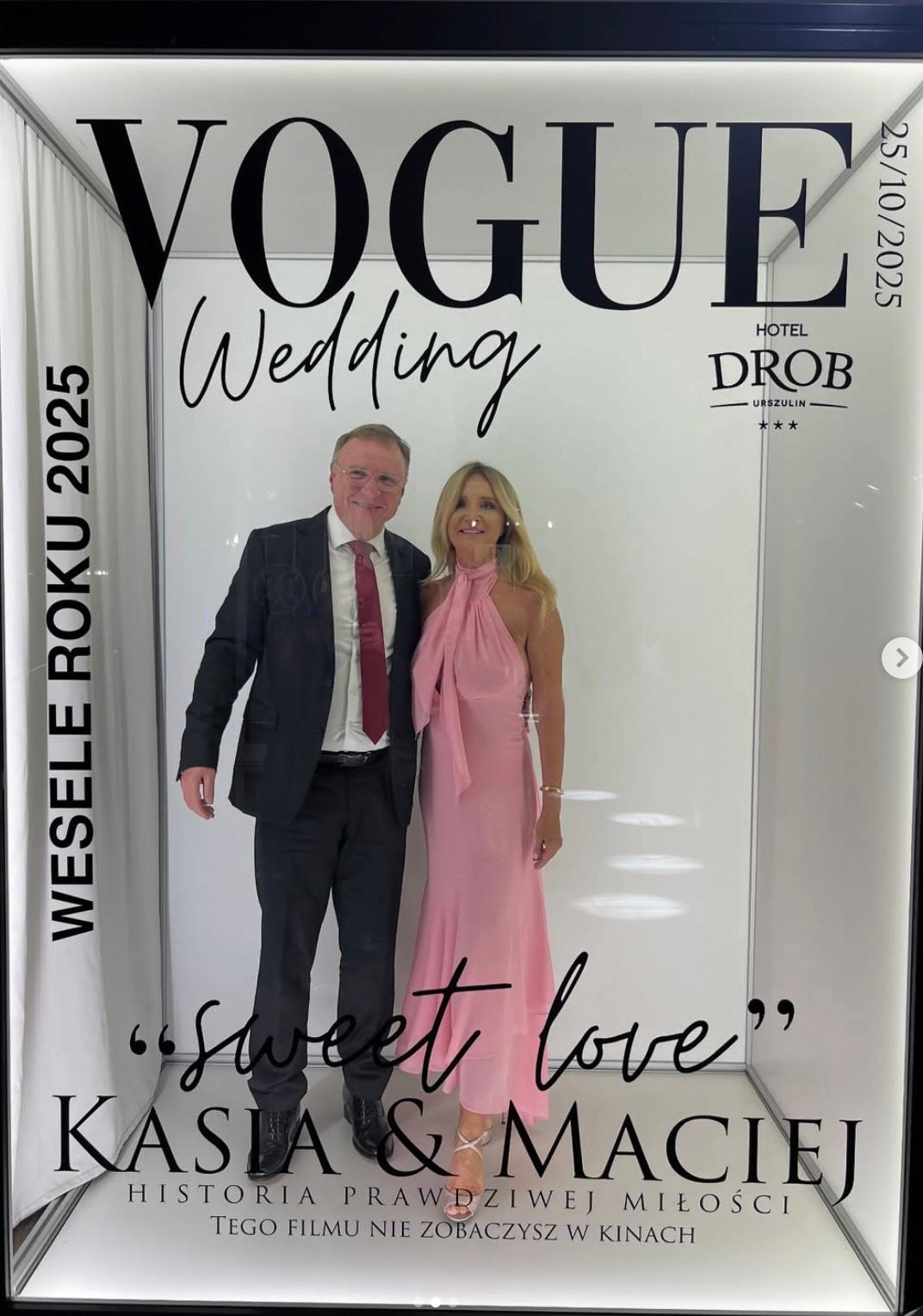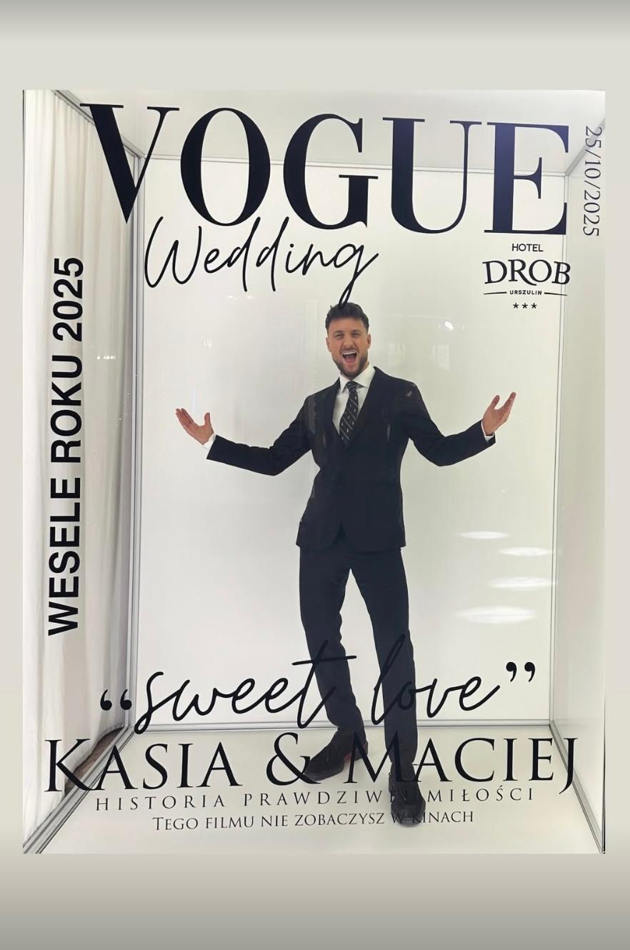 W tle widniało hasło „Sweet Love – Kasia & Maciej. Historia prawdziwej miłości” oraz data ceremonii: 25.10.2025. Całość dopełniał subtelny branding hotelu, w którym odbyło się przyjęcie, eleganckiego Hotelu Drob w Urszulinie. Wśród osób, które już pochwaliły się zdjęciami z tej wyjątkowej „okładki”, znalazła się m.in. Joanna Kurska, czy Olek Sikora.