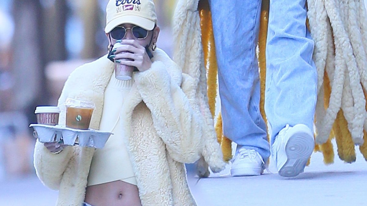Hailey wpadła na paparazzi, kiedy wyszła po kawę. Na tę okazję – prócz olbrzymiego płaszcza z frędzlami – wybrała czapkę z daszkiem, top odsłaniający brzuch oraz szerokie jeansy. Modelka miała też dość pracochłonny manicure, z którym była widziana kilka dni wcześniej.