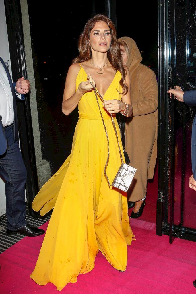 Aktorka miała na sobie długą, żółta sukienkę z rozcięciem i sporym dekoltem. Dobrała do niej czarne sandałki na obcasie. Kreacja była ozdobiona dużą kokardą z tyłu.