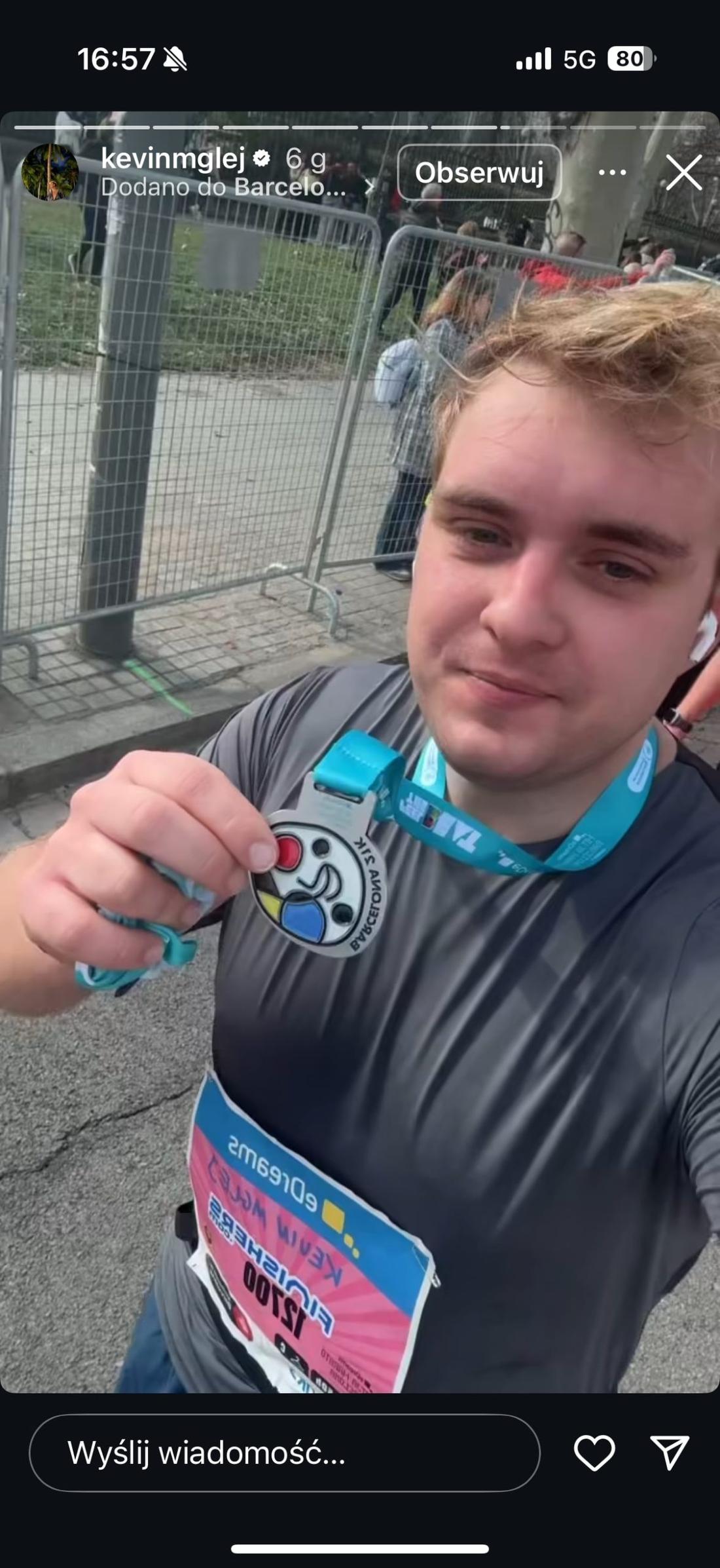 Dzisiaj Kevin Mglej podzielił się swoim sukcesem na Instagramie, relacjonując udział w swoim pierwszym półmaratonie na dystansie ponad 21 km. W emocjonalnym wpisie zaznaczył, jak trudną drogę musiał przejść, by osiągnąć taką formę.