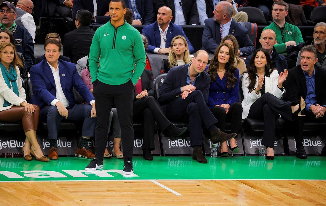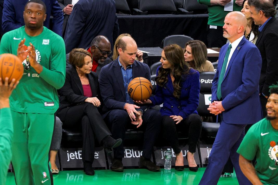 Książę i księżna Walii zostali przyjęci przez Wycliffe’a „Wyc” Grousbecka, głównego właściciela Boston Celtics, zanim zasiedli na korcie. Towarzyszyli im także gubernator elekt stanu Massachusetts Maura Healey, a także legenda Celtics Thomas „Satch” Sanders.