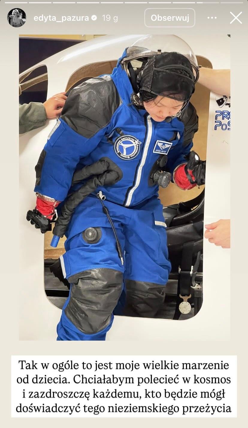 Pod opublikowanym postem zabrała głos sama Edyta Pazura, która stanęła w obronie kobiet. Żona znanego aktora uznała, że nie koniecznie kierowała nimi zachcianka, a marzenia i chęć pokazania się światu. Dodatkowo podsumowała, że w przypadku płci męskiej z pewnością ten lot nie spotkałby się z taką krytyką.