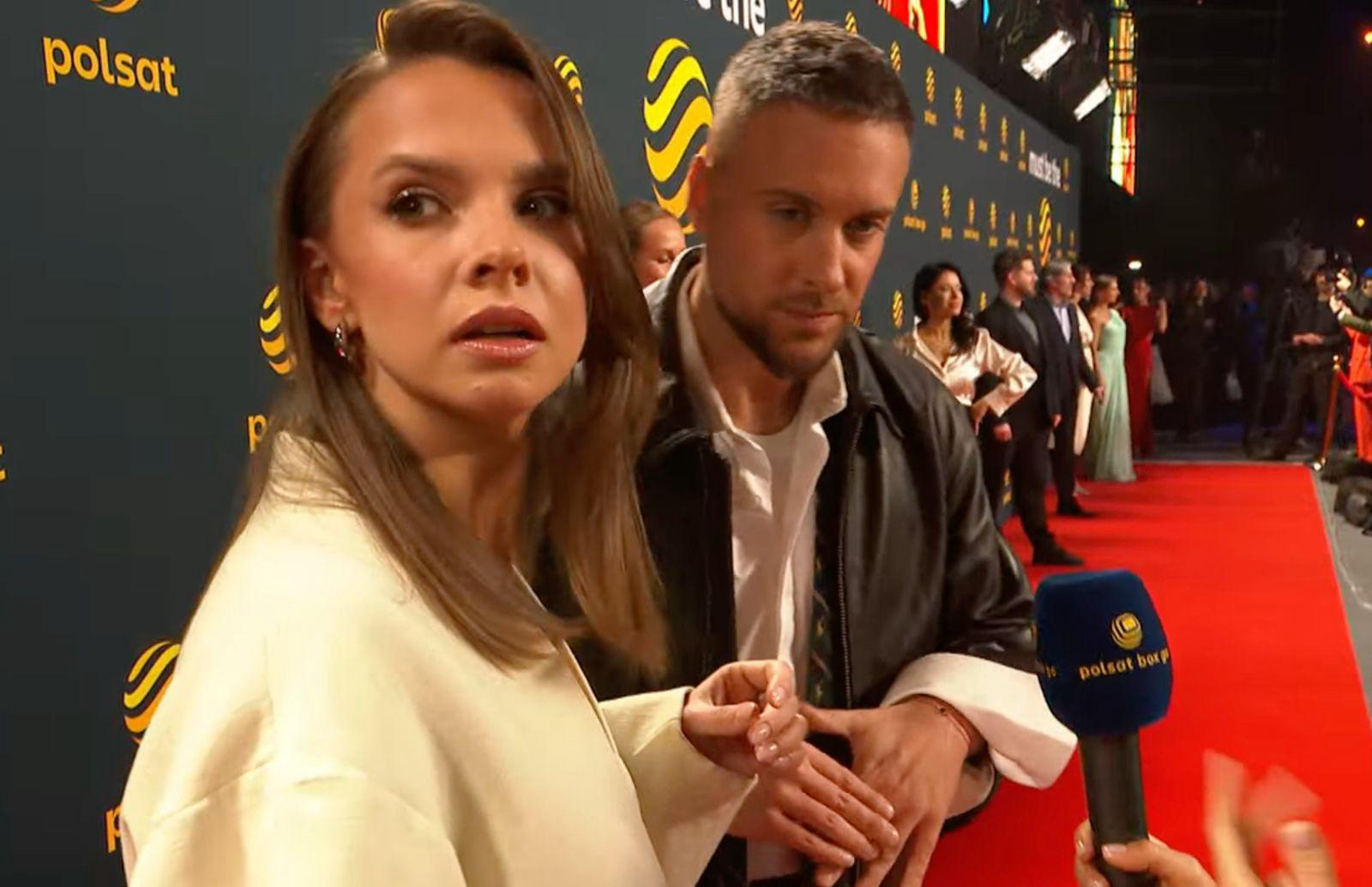 Jednym z bardziej nieoczekiwanych momentów ramówki była sytuacja z udziałem Olka Sikory i Oli Filipek, prowadzących “Halo tu Polsat”. Para pojawiła się na czerwonym dywanie w dopracowanych, eleganckich stylizacjach — on w klasycznym, nowoczesnym zestawie, ona w stonowanej, bardzo telewizyjnej kreacji, która idealnie wpisywała się w charakter wydarzenia.