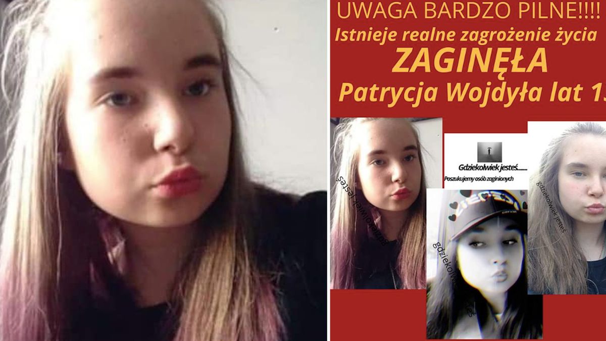 13-letnia Patrycja Wojdyła w chwili zaginięcia była ubrana w czarne legginsy, bluzę z kapturem, zieloną kurtkę z czarno-szarym futerkiem. Wzrost: około 170 cm, waga: około 50 kg. Znak rozpoznawalny: mały tatuaż w kształcie serduszka nad kostką.