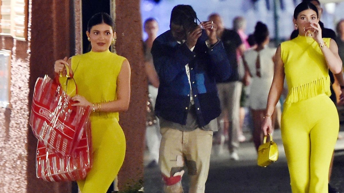 Zakochana Kylie Jenner jak żółty ptak przemierza ulice Positano z Travisem Scottem